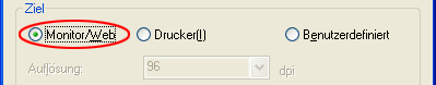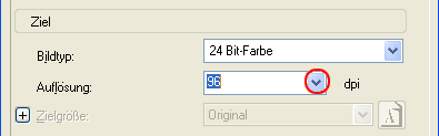 Wählen Sie 96 dpi aus der Liste Auflösung aus.