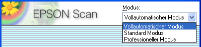 Sie können den Scanmodus über das Listenfeld oben rechts im Fenster auswählen und ändern.
