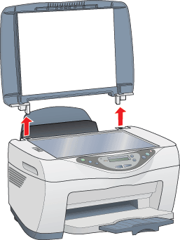 Zum Abnehmen der Vorlagenabdeckung öffnen Sie sie und ziehen Sie sie nach oben.