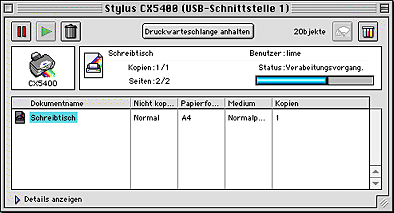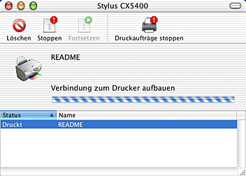 Nachdem Sie einen Druckauftrag übertragen haben, erscheint in der Taskleiste eine Schaltfläche EPSON Stylus CX5400. Klicken Sie auf dieses Symbol, um den EPSON Spool Manager zu öffnen.