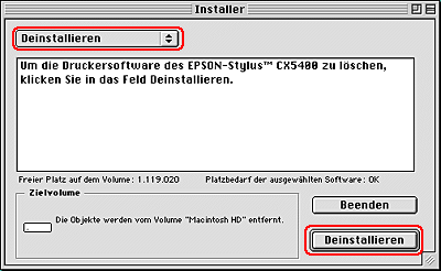 Wenn Sie das Gerät unter Windows Me oder 98 am USB-Port anschließen, müssen Sie eine etwaige zusätzliche USB-Komponente deinstallieren. Wählen Sie im Utility Programme hinzufügen/entfernen aus der Liste die Option EPSON USB-Drucker aus und klicken Sie dann auf die Schaltfläche Hinzufügen/Entfernen. Klicken Sie anschließend auf OK, wenn Sie in einer Meldung aufgefordert werden, den Computer neu zu starten. Wenn der EPSON USB-Drucker nicht im Utility Programme hinzufügen/entfernen erfasst ist, greifen Sie auf die Software-CD-ROM zu und doppelklicken Sie auf EPUSBUN.EXE. Führen Sie dann die angezeigten Anweisungen aus.