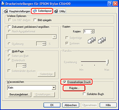 Der tatsächliche Bindungsrand kann abhängig von der Anwendung von den vorgegebenen Einstellungen abweichen. Drucken Sie einige Testseiten aus, bevor Sie den gesamten Druckauftrag starten.
