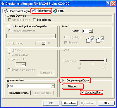 Aktivieren Sie das Kontrollkästchen Doppelseitiger Druck. Aktivieren Sie dann das Kontrollkästchen Gefaltete Broschüre.