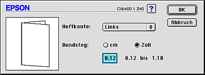 Legen Sie die Breite des Bindungsrands im Textfeld fest. Sie können eine beliebige Breite zwischen 0,12 und 1,18 Zoll bzw. 0,3 und 3,0 cm eingeben.
