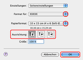 Klicken Sie zum Schließen des Dialogfelds Papierformat auf OK.