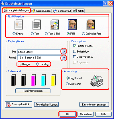 Klicken Sie auf OK, um das Dialogfeld "Druckereinstellungen" zu schließen.
