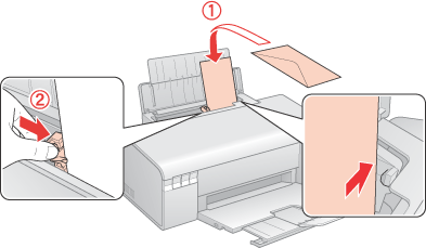 Stärke und Falzeigenschaften von Briefumschlägen sind sehr unterschiedlich. Wenn der Umschlagstapel höher als 10 mm ist, drücken Sie vor dem Einlegen jeden Umschlag flach. Falls die Druckqualität schlechter wird, wenn Sie einen Stapel Briefumschläge eingelegt haben, legen Sie die Briefumschläge einzeln ein.