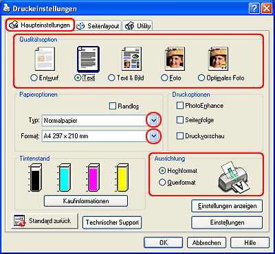 Klicken Sie auf die Registerkarte Haupteinstellungen und wählen Sie anschließend eine der folgenden Qualitätsoptionen: