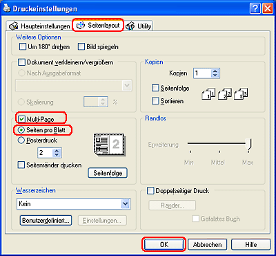 Wählen Sie für die Druckoption "Seiten pro Blatt" die folgenden Einstellungen.