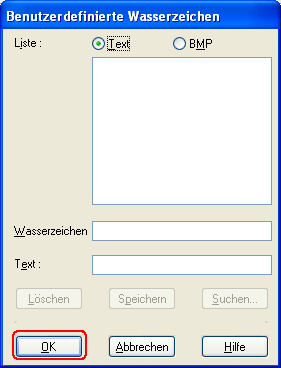 Mit der Funktion "Wasserzeichen drucken" können Sie ein textbasiertes oder ein bildbasiertes Wasserzeichen auf das Druckmedium drucken.