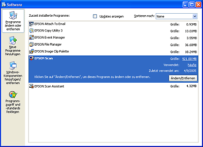 Deinstallieren von Epson Scan
