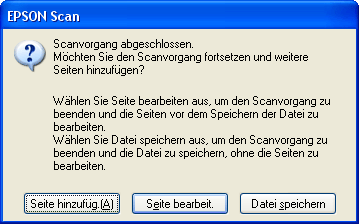 Wenn Sie alle Einstellungen zum Speichern der Datei gewählt haben, klicken Sie auf OK. Epson Scan scannt die Seite und zeigt dieses Fenster an.