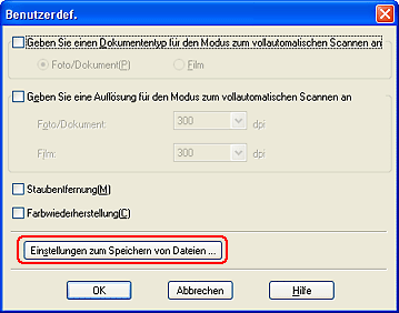 Es wird das Fenster "Einstellungen zum Speichern von Dateien" angezeigt.