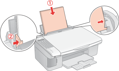 Legen Sie das Papier mit der zu bedruckenden Seite nach oben und gegen die rechte Seite des Papierfachs ein. Schieben Sie dann die linke Papierführungsschiene an die linke Seite des Papierstapels heran, aber nicht zu fest.