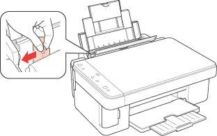 Senken Sie das Papierausgabefach ab, und ziehen Sie anschließend die Verlängerung heraus.