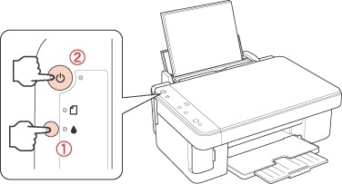 Halten Sie die Taste  gedrückt und drücken Sie die Taste  , um den Drucker einzuschalten. Lassen Sie beide Tasten los, sobald sich der Drucker eingeschaltet hat.