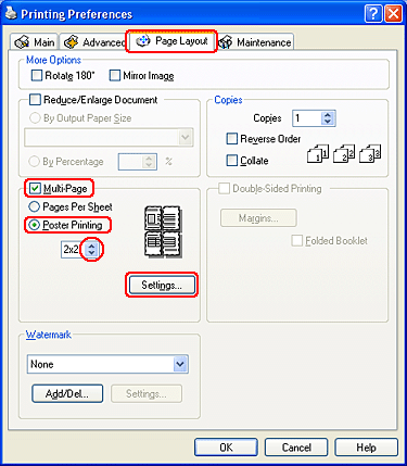 Beim Posterdruck können Sie Bilder in Postergröße drucken, indem Sie eine Seite so weit vergrößern, dass diese mehrere Blätter bedeckt.