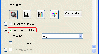 Aktivieren Sie im Auswahlbereich Korrekturen das Kontrollkästchen De-screening-Filter.
