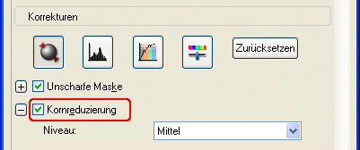 Wählen Sie im Listenfeld "Niveau" den Grad der Kornreduzierung aus.