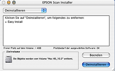 ![]() | Deinstallieren Sie EPSON Scan Nähere Informationen erhalten Sie unter EPSON Scan deinstallieren. |