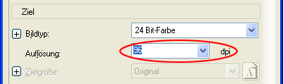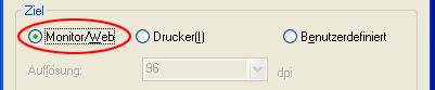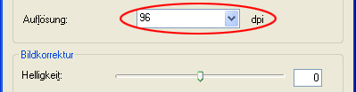 Wählen Sie 96 dpi im Listenfeld Auflösung aus.