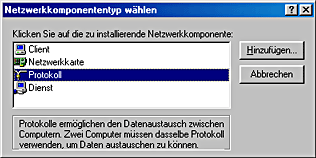 Das Dialogfeld Auswahl: Netzwerkprotokoll wird angezeigt.