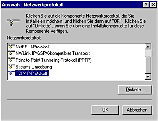 Wählen Sie TCP/IP-Protokoll aus der Liste und klicken Sie auf OK.