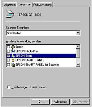 Stellen Sie in der Liste der Scanner-Ereignisse sicher, dass Start Button ausgewählt ist.