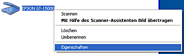 Klicken Sie mit der rechtem Maustaste auf das Symbol des Scanners und wählen Sie Eigenschaften.