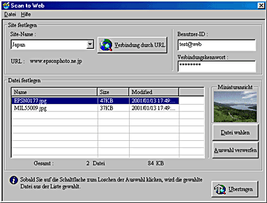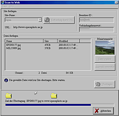 Betätigen Sie die Taste Scan to Web am Scanner. Das folgende Fenster wird aufgerufen.