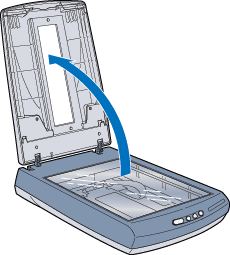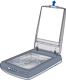 Der integrierte Durchlichtaufsatz des Scanners funktioniert sowohl als Vorlagenabdeckung als auch als Filmaufsatz. Sie können Negativfilmstreifen und Dias scannen, indem Sie einfach nur die Abdeckung für den Durchlichtaufsatz abnehmen.