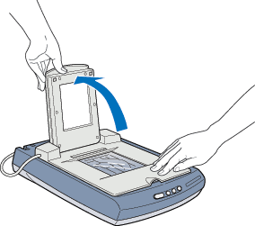 Wenn Sie mit dem Scannen fertig sind, bringen Sie den integrierten Durchlichtaufsatz in der umgekehrten Reihenfolge, in der Sie ihn abgenommen haben, wieder an.
