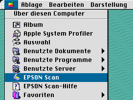 Wenn Adobe Photoshop vor EPSON Scan auf dem Computer installiert wird, können Sie aus Photoshop auf EPSON Scan zugreifen. Wählen Sie in Photoshop die Option Import im Menü Datei und wählen Sie dann EPSON Scanner Perfection 2400.