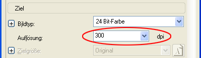 Wählen Sie 300 dpi aus dem Listenfeld Auflösung aus.