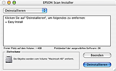 Informationen zum Deinstallieren von EPSON Scan finden Sie weiter unten im entsprechenden Abschnitt.