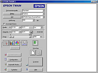 Scannen im Manuellen Modus / Verwendung des EPSON TWAIN-Fensters Manueller Modus