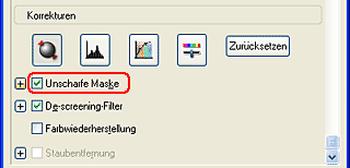 Aktivieren Sie das Kontrollkästchen Unscharfe Maske im Abschnitt "Korrekturen" (möglicherweise müssen Sie im Bildschirm ganz nach unten scrollen).