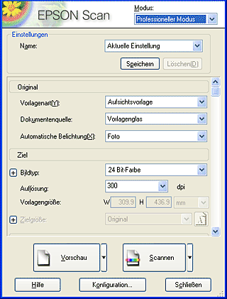 Klicken Sie auf Scannen. EPSON Scan startet den Scanvorgang. Das gescannte Bild wird im angegebenen Ordner gespeichert.