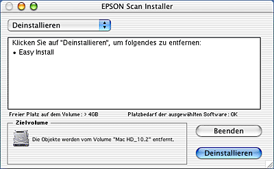 Informationen zum Deinstallieren von EPSON Scan finden Sie weiter unten im entsprechenden Abschnitt.