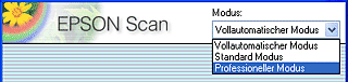 ![]() | Wählen Sie den entsprechenden Modus aus dem Listenfeld im Fenster oben rechts. Informationen zum Auswählen eines Scanmodus erhalten Sie unter Scanmodus ändern. |