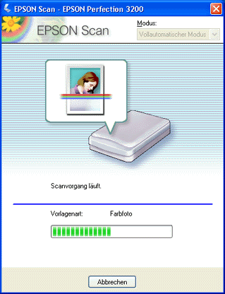 Wählen Sie nicht WIA-EPSON Perfection 3200 aus dem Menü zur Wahl des Scanners. Anderenfalls ist nicht die gesamte Funktionalität des EPSON Scanners verfügbar.