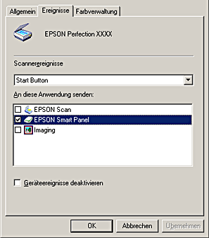 unter Windows außer EPSON Smart Panel beliebige andere Anwendungen, die "Scannerereignisse" unterstützen (z. B. Microsoft Imaging für Windows, sofern installiert), zuweisen. Wenn Sie die