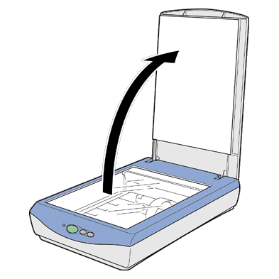 Öffnen Sie zunächst die Vorlagenabdeckung. |
