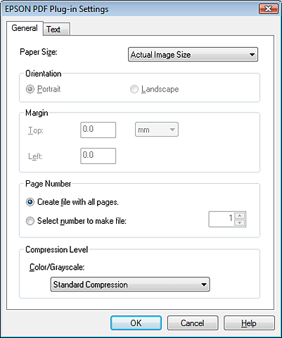Informationen zu weiteren Einstellungen im Fenster EPSON PDF Plug-in Settings (EPSON PDF Plug-in-Einstellungen) finden Sie in der Hilfe von Epson Scan.