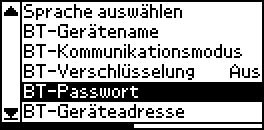 Drücken Sie die Taste oder , so dass BT-Passwort markiert ist, und drücken Sie dann die Taste OK.
