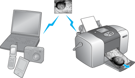 Nähere Informationen zum Drucken von Bluetooth-fähigen Digitalkameras, Digital-Videokameras, PDAs, mobilen PCs und anderen Geräten erhalten Sie in der Dokumentation des Geräts und des Druckers.