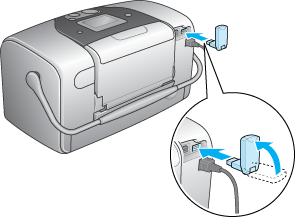 Schließen Sie den Bluetooth Photo Print Adapter an den Drucker an. Siehe Bluetooth Photo Print Adapter anschließen und abtrennen