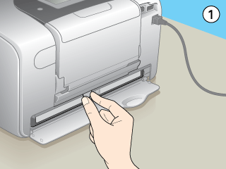 Öffnen Sie die Abdeckung des Fotopatronenfachs an der Rückseite des Druckers.