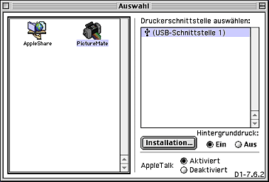 Wählen Sie Auswahl im Apple-Menü aus. Klicken Sie auf das entsprechende Druckersymbol und wählen Sie die gewünschte Druckerschnittstelle aus der Liste Druckerschnittstelle auswählen aus.