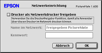 Verwenden Sie die Einstellung Druckerfreigabe, die eine Standardfunktion von Mac OS X 10.2 oder höher ist. Diese Option ist unter Mac OS X 10.1 nicht verfügbar. Einzelheiten finden Sie in der Dokumentation des Betriebssystems.